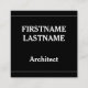 Este cartão de visita apresenta um nome, profissão e contatos que podem ser personalizados. Pode ser utilizado por um profissional de design de construção, como um arquiteto, especialista em decoração de interiores, decorador de interiores ou especialista em decoração de interiores.