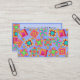 Faça uma impressão com este cartão de visita para seu negócio de colcha, compro ou culpa. Coordenar com um cartão de visita correspondente. Esta cartão de visita apresenta um design de bloco de colcha baseado na arte original de Phyllis Dobbs. O design apresenta blocos de manta de retalhos favoritos e blocos exclusivos criados em cores vibrantes e dinâmicas num fundo roxo de lavanda periwinkle. As cores são cor-de-rosa, laranja, turquesa, amarela, vermelha e verde. Totalmente personalizável.