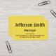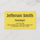 Esse design básico, mínimo e moderno poderia ser usado por um profissional como um assistente jurídico, advogado ou notário. O nome, a profissão e os contatos podem ser personalizados.