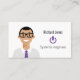 Ilustração de um caráter masculino de TI (tecnologia da informação). Todas as cores podem ser facilmente alteradas. Basta clicar em Personalizar este modelo e, em seguida, em > Clique para personalizar ainda mais. Os óculos também podem ser removidos. Para obter mais produtos com esse caractere, procure Pessoa 5 na guia coleções.