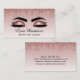 Faça uma boa impressão com este cartão de visita chic com rosa dourado faux glitter gotejando do topo, uma ilustração dos olhos com rosa dourado brilhando sombra ocular e sobrancelhas e pestanas dramáticas, e seu nome em um roteiro contra o fundo rosa dourado ombre. Adicione suas informações de contato no verso. Perfeito para profissionais em salões de beleza, maquiadores, estilistas capilares, esteticistas e profissionais que prestam serviços de coleira e sobrancelha