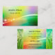 Cartão de visita com um design colorido e vibrante com faíscas de luz e dentes de leão com gotas de água no dorso. Bonito para um curandeiro de energia ou para um profissional que trabalha na indústria do bem-estar ou da malhação.