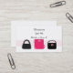 Um cartão na moda para uma variedade de negócios ou profissões de moda. Bolsas de moda clássicas em legal cores de aqua, cor-de-rosa com pontos e preto. Personalize com todas as suas informações conforme desejado. Uma banda suave de cor-de-rosa acentua as bolsas.