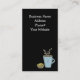 Um cartão único com uma caneca de café azul com café quente a vapor e um muffin de limão ao lado. Personalize com todas as informações de sua empresa conforme desejar.