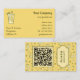 Um copo de chá gelado. Cor de fundo personalizada. Muitos campos de texto personalizáveis no lado frontal. Padrão constante, ícones de ID social e código QR no verso.