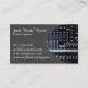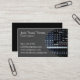 Um console de mixagem de som com todos os botões e switches formam o fundo principal dessa imagem de cartão de visita. Seu nome e detalhes aparecem sobre uma semisesfera de cinza à esquerda. Este cartão de visita é especialmente adequado para engenheiros de som, engenheiros de gravação e DJs, mas também é adequado para qualquer pessoa na indústria de música ou áudio.