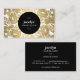 Um padrão floral vintage é moderno com um esquema falso de ouro metálico e cor branca. O círculo negro centralizado destaca seu nome ou nome comercial neste modelo de cartão de negócios moderno. Esta design faz parte de uma série de material de escritório de coordenação. Compre papelaria correspondente, placas de rack, etiquetas e muito mais em nosso compro: zazzle.com/1201am. Para pedidos ou perguntas de design, contacte-nos em www.1201am.com. © 1201AM CREATIVE