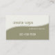 Cartão de visita com um design simples em cores verde-oliva e branco suave. No verso está o seu código de QR personalizado.