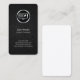 Este design cartão de visita de desenvolvedor de conteúdo forte e elegante apresenta uma sutil textura preta escura escura em fundo. A parte superior da placa tem um ícone cromo de tamanho médio de um código de computador. Seu nome e título aparecem no meio, em letras brilhantes e fáceis de ler, enquanto seus detalhes de contato aparecem na parte inferior da placa em letras menores, mas limpas e legíveis. Perfeito para computadores, laptop, engenharia, técnica, ti, informação, temas de tecnologia da informação, mas pode ser usado para quase qualquer empresa ou indústria.
