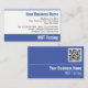 CARTÃO DE VISITA de teste MOT com um código QR na parte traseira. Cartão de chamada para uma empresa de teste MOT.