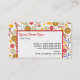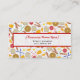 Um cartão de visita com tema de moda apresentando um padrão temático de comida do café da manhã. Design é constituído por waffles, torrada, toranja, sumo de laranja, garfos, facas, bacon e ovos.