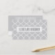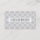 Estes Cartões de visitas Profissionais Modernos de Padrão Ogeo Branco Simples e Cinzas são uma escolha legal e sofisticada para o spa ou profissional de terapia. Um design geométrico único e feminino para terapeutas e instrutores contemporâneos, esse cartão de visita elegante também é um cartão de lembrete de compromisso. Também uma escolha de excelente para um salão ou estilista, ou qualquer pessoa que queira um cartão de visita simples e elegante. Este cartão coordena-se com a Coleção de Cores de Medley Tinted Pantone para 2015.