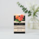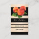 Cartão de visita com um design striped em ouro preto e rosa claro com uma imagem de pêssegos (opcional). O texto está definido para um cartão de visita de compromisso, mas você também pode usar este modelo como um cartão de visita regular. Bonita para um terapeuta nutricional ou dietista profissional.