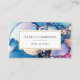 Um cartão de visita de cor magnífico, com tintas de álcool azuis, roxas, cor-de-água e douradas, adequado para qualquer profissão criativa. Inclua também os identificadores de mídia social ou simplesmente exclua os ícones que não são necessários.