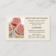 Cartão de visita com uma imagem de cupcakes cor-de-rosa no fundo do caramelo creme. Bonita para uma padaria cupcake, uma padaria especializada em bolos e doces, ou uma empresa de restauração de sobremesa.
