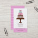 Cartão de visita vertical apanhador de olhos com gráfico de bolo de rico para padaria ou restauração. O texto pré-formatado frente e verso está pronto para ser editado com seus próprios detalhes. Esquema de cor rosa, marrom e azul.