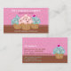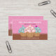 Um cartão de visita do divertimento para um cupcake ou uma empresa da padaria com os três bolos deliciosos na parte dianteira com o papel de parede cor-de-rosa à moda do fundo.