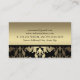 Este Cartão de visita personalizável moderno apresenta uma cor damasco preta e dourada sobre um fundo dourado. Personalize-o adicionando seus detalhes na fonte de sua escolha!