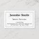 Este cartão de visita simples e limpo apresenta uma borda de linha dupla com uma linha tracejada no meio. O nome, profissão e contatos podem ser personalizados. Pode ser utilizado por um profissional como decorador de interiores, arquiteto ou designer de interiores.