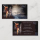 Cartão de visita engraçada com uma vintage alfineteira em uma roupa de bruxa. O fundo mostra uma casa assombrada na lua de cheio com um morcego voando ao redor. Perfeito para uma empresa de fornecimento de Halloween, revendedor de roupas ou outros fins relacionados ao Halloween.
