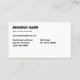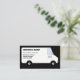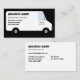 Um desenho simples de uma carrinha de entrega está na frente do cartão. Seu nome comercial, slogan da empresa, nome, título e número de telefone são impressos no painel lateral da van comercial como se fosse pintado lá. A carrinha é branca com letras pretas e cinzas. A carrinha é desenhada num estilo minimalista, quase cartoon. Atrás da van está um sólido fundo preto que vai com a letra preta. A parte traseira tem informações de contato adicionais. Bom para os seguintes tipos de empresas: transporte de mercadorias, entrega, transporte marítimo, logística, movimentação, transporte e qualquer outra empresa que utilize uma grande carrinha. O cartão também pode ser usado para serviços móveis como limpeza, faxina, faxineira, caminhões de comida, homem de mão, canalizadores, eletricistas, carpinteiros, pintores, instalações residenciais, serviços de saúde doméstica, HVAC, etc.