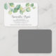 Estas cartões de visitas botânicas apresentam uma cinta de folhas de eucalipto verde de cor aquosa em formato de canto arredondado. Adicione suas informações de contato pessoais em uma face serif moderna e uma fonte de script caprichoso na cinza. A placa se reverte para uma cor de cinza sólida. Perfeito para cartões de visitas planejadores de eventos da Flórida, blogueiros profissionais, consultor de marketing de mídia social, designer ou decorador de interiores butique, florista e mamães. Para ver mais cartões de visitas online visite www.zazzle.com/vginvites