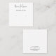 Cartão de visita de exibição ao quadrado de exibição do script moderno. Um design minimalista chic com elementos ajustáveis do orifício do brinco e texto opcional. Personalize a frente do cartão com seu nome e título personalizados. O lado inverso com os detalhes do contato comercial. Opção de edição adicional na página do produto.