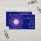 Flor geométrica em roxo e lilac sobre fundo azul escuro com espaço de logotipo em ambos os lados do cartão (ou apagar com o botão personalizar) Um cartão profissional ou pessoal forte mas ainda muito feminino e gentil | artista de roupa, artesanato, designer, têxtil, moda, compras etsy, pequena empresa, florista, saúde, beleza, decoração doméstica, consultor, apenas para citar algumas ideias.
