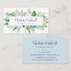 Este clássico cartão de visita de flores brancas é perfeito para um dono de pequenas empresas, consultor, estilista e muito mais! O elegante design floral apresenta marfim macio e rosas brancas e peônias com toques de flores azuis-rosadas-periwinkle e folhagem verde.
