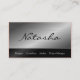 Clássica Simples, Moderna Dois Lados, Letra Script em Efeito de Aço Bruto, Somente Texto de Nome, Cartão de visita profissional ideal para a Mulher Designer, Decorador Interior, Cosmetólogo, Hairdresser, Lista de Cabelos, Gerente de Projetos, Planejador de Eventos, Planejador de Casamentos, Consultor de Relações Públicas, Médico Ocupacional, Psiquiatra, Reitor ou Real Estate Agent, Attorney, Lawyer, Solicitor, Paralegal, Chiropractor, Cleaner, Veterinarian, Interpreter & Translator, Sales Representante / Rep, Agregador, Trabalhador Social e muitos outros profissionais. O texto pode ser alterado em fonte, cor, tamanho e localização clicando no botão azul 'PERSONALIZAR TI'. Observe que nomes de empresas longos exigirão um redimensionamento. Obrigados de visita.