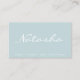 Clássica Simples, Moderna, Duas Letras Ladas, White Script no Cartão Azul, Somente Texto de Primeiro Nome, Cartão de visita profissional ideal para Designer Feminina, Decorador Interior, Cosmetólogo, Hairdresser, Lista de Cabelos, Gerente de Projetos, Planejador de Eventos, Planejador de Casamentos, Consultor de Relações Públicas, Dentista, Psicólogos, Psiquiatra, Realtor Real Agente estadual, advogado, advogado, solicitador, assistente, assistente jurídico, Chiropractor, Cleaner, veterinário, intérprete e tradutor, representante de vendas/representante, proprietário, trabalhador social e muitos outros profissionais. O texto pode ser alterado em fonte, cor, tamanho e localização clicando no botão azul 'PERSONALIZAR TI'. Observe que nomes de empresas longos exigirão um redimensionamento. Obrigados de visita. Outros Designs que você queira: