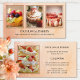 Cartão de visita com imagens de bolos doces e sobremesas emolduradas por um design de pêssego e rosa de ouro. Você pode substituir todas as fotos por suas. Bonita para uma doce padaria ou companhia de restauração de sobremesa.