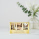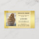 Cartão de visita com imagens de bolos doces e sobremesas enquadradas por um elegante design de ouro. Você pode substituir todas as fotos por suas. Bonita para uma doce padaria ou companhia de restauração de sobremesa.