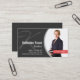 Um preto cinzento escuro moderno, profissional e chic, com cartão de visita de cinza de de , com fácil personalização fotográfica, que dá um sentido de credibilidade e de ligação pessoal com potenciais clientes. Esta cartão de visita é mais adequada para profissionais do setor imobiliário e de serviços financeiros. Por exemplo, corretores imobiliários, agentes de seguros. O verso tem espaço para banner para personalização de detalhes. Perzonalize facilmente com o monograma inicial que se mistura como fundo e com sua foto de proporção de 1280 pixels a 1600 pixels. Como alternativa, você pode ajustar e dimensionar sua foto no modo de personalização. A imagem da amostra é fornecida pela Olga Vasilkova e não deve fazer parte do produto final destinado à venda. Serve apenas para fins ilustrativos.