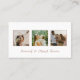 Esta bela cartão de visita chic é perfeita para a promoção do seu retrato e/ou da sua carreira fotográfica de casamento! Basta carregar suas próprias fotos para mostrar suas próprias fotografias neste cartão. As fotos são formatadas como uma proporção de 1:1, com uma borda fina ao redor de cada uma.