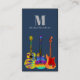 Cartão de visita de professor de guitarra com modelo de fotografia e tipografia moderna. Ilustrações coloridas de guitarra psicodélica sobre fundo azul, completas com monograma personalizado, nome, detalhes e modelo de foto. O perfeito design de cartão de visita para guitarristas, músicos profissionais, artistas, compositores, compositores e professores de música. Arte original da artista Catherine Sweetman