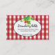 Cartão de visita Primitivo de Gingham Vermelho e Branco - Estilo de Etiqueta de Fábrica com Morangos Duas Cartões de visitas Sidirecionais.