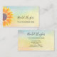 Este cartão de visita botânico é decorado com um girassol amarelo e um fundo colorido. Facilmente personalizável. Use a Ferramenta Design para alterar o tamanho, o estilo ou a cor do texto. Porque nós criamos a nossa trabalho de arte, você não encontrará esta imagem exata de outros designers. Original Watercolor © Michele Davies.