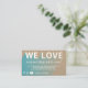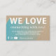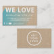Personalize este cartão de marketing comercial moderno. Isso é perfeito para um negócio de comércio eletrônico, como uma butique, loja Etsy ou qualquer outra pequena empresa. Ele apresenta a frase "NÓS AMOS" e tem texto personalizável para explicar mais detalhes. O verso pode ser usado para exibir o logotipo personalizado da sua empresa. Este produto expressa interesse em se conectar com os clientes, encorajando os compradores a enviar mensagens para você e a seguir seus negócios nas mídias sociais com as informações fornecidas ao lado dos ícones do Facebook, Instagram e YouTube nas mídias sociais.