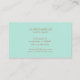 Cartão de visita de listras muito elegantes, com ouro brilhante, hortelã e listras pretas sobre fundo branco e um nome w título sobre um retângulo horizontal no meio. Toda a informação está no verso com fundo de menta, fonte elegante em tom dourado.