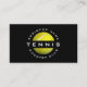 Cartão de visita de tênis profissional com um logotipo moderno de tênis amarelo com tipografia em negrito sobre um fundo preto elegante. Perfeito para clubes de tênis, treinadores, instrutores ou organizadores de eventos desportivos. Personalize com seu nome comercial, detalhes de contato e slogan para criar uma forte primeira impressão. Ideal para trabalhar em rede, promover aulas de tênis, ou representar seu clube em torneios e eventos comunitários.