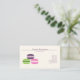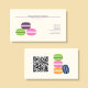 Um cartão de visita pastel com uma ilustração macarônica francesa. Poderia ser utilizado para um cozinheiro de pastelaria, um compro de macarões ou produtos de confeitaria e serviços de bolos caseiros! Vem com um Código QR nas costas e outro desenho de macarões!