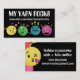 Escrivas coloridas ou esferas rabiscadas de fios com faces de emoji nesta cartão de visita para artesanatos de tricô, crochê, fios de homespun ou outros fios.