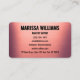 Faça uma primeira impressão ousada, mas graciosa, com este elegante cartão de visita de rosa metal escovado, projetado para maquiadores, estilistas, consultores de moda, planejadores de eventos ou outros profissionais criativos. O fundo metálico macio e em tons de rosa adiciona um toque refinado, enquanto a tipografia moderna e ousada mantém seus contatos claros e profissionais. Totalmente personalizável de ambos os lados, este modelo elegante oferece uma maneira atraente de mostrar a sua marca com sofisticação e talento.