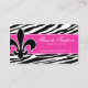 Cartão de visita de moda Fleur de lis zebra rosa