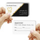 Alojamento clássico de Dentista e modelo de combinação de cartões de visitas com design moderno que inclui um símbolo de dente dourado, linha de divisor geométrico elegante impressa em estoque de cartão de visita de canto arredondado para um implante de dentista, clínica dentária, ortodontista ou odontológico.
