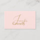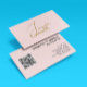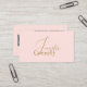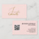 Cartão de visita de na moda com código QR rosa-rosado. Profissional minimalista com um elegante roteiro manuscrito.