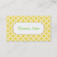 Um padrão amarelo e branco alegre decora este cartão de visita de na moda. Personalize esta cartão de visita para atender às suas necessidades. Adicione ou apague informações, altere o estilo da fonte, o tamanho da fonte, etc... O design é da arte original. Use este cartão de visita de na moda para um spa, salão, pequena empresa, decoração doméstica, planejador de eventos, assistência à criança etc..