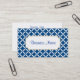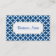 Um padrão moderno azul e branco decora este cartão de visita na moda. Personalize esta cartão de visita para atender às suas necessidades. Adicione ou apague informações, altere o estilo da fonte, o tamanho da fonte, etc... O design é da arte original. Use este cartão de visita de na moda para um spa, salão, pequena empresa, decoração doméstica, planejador de eventos, assistência à criança etc..