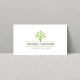 Uma árvore cheio de folhas ousada e verde é colocada sobre um fundo branco neste modelo de cartão de negócios profissional para empresas paisagísticas. © 1201AM CREATIVE